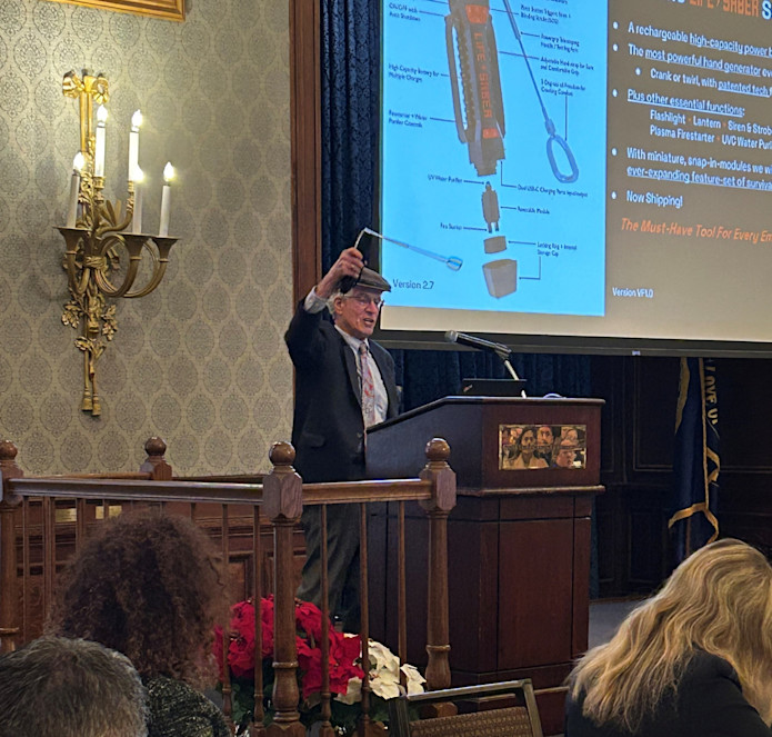 Meanwhile, I presented the LifeSaber at an investor forum last week here in Philly (see photo of me twirling away); the response was extremely encouraging. Please reach out if you're interested to review my plans to turn the LifeSaber into a continuing business.
