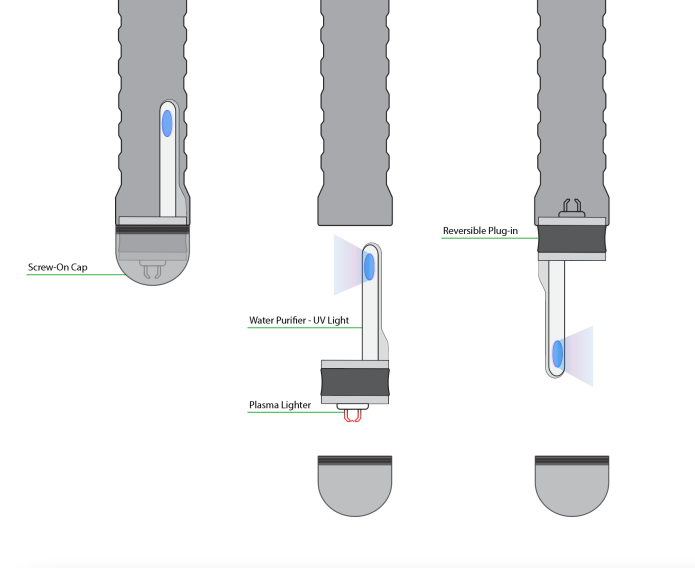 Well now, taking this to its logical conclusion, we have decided to combine the Plasma Firestarter and UVC Water Purifier into a single, reversible (yet extremely compact) combination snap-in module.